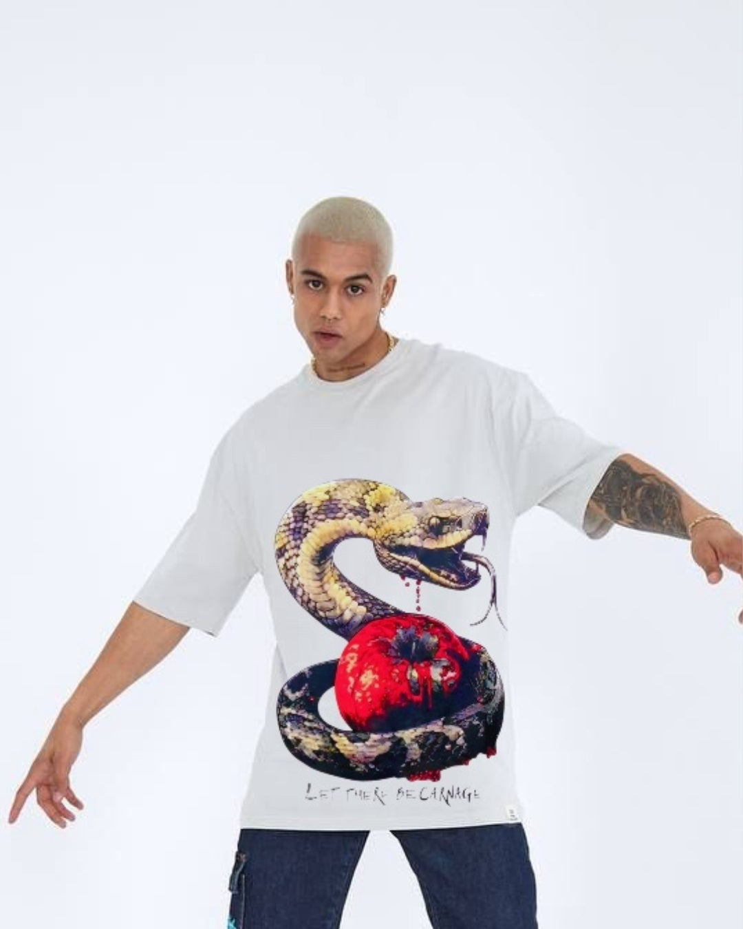 Snake Wrapped Apple Unisex Exclusive Oversized Tee - White