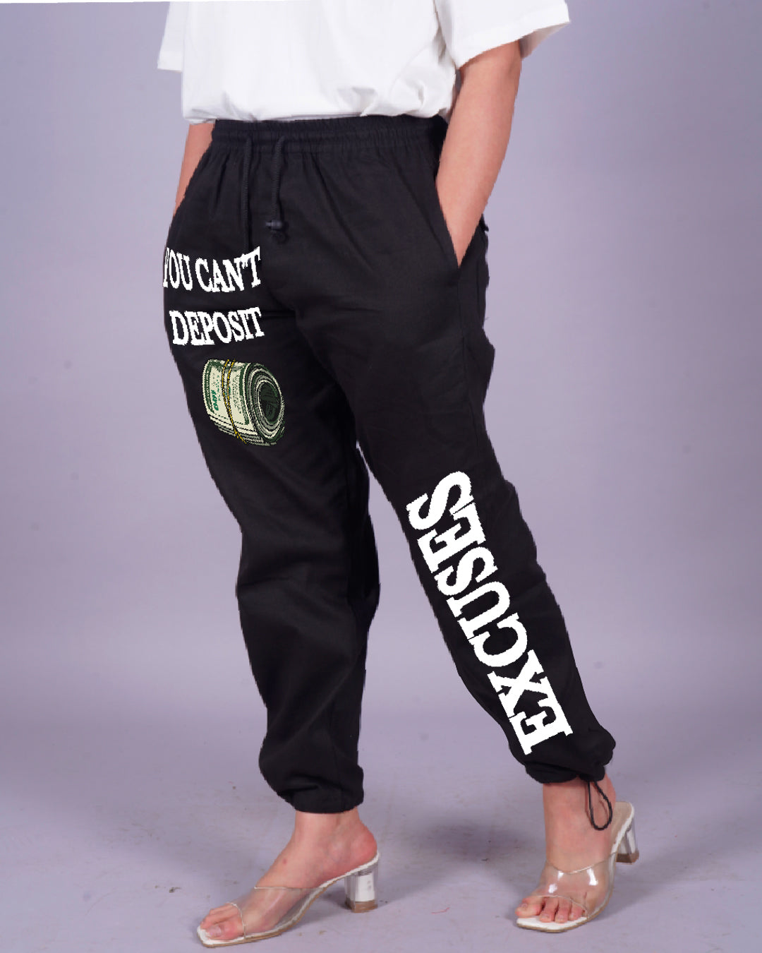 Excuses: Black Adjustable Cargo Pants for Ladies