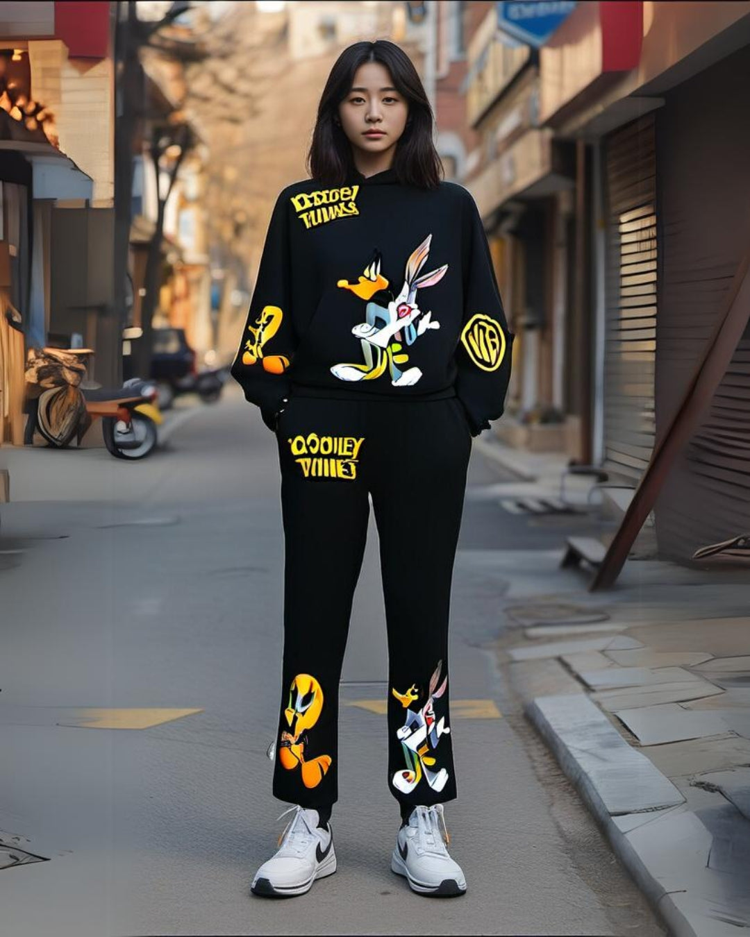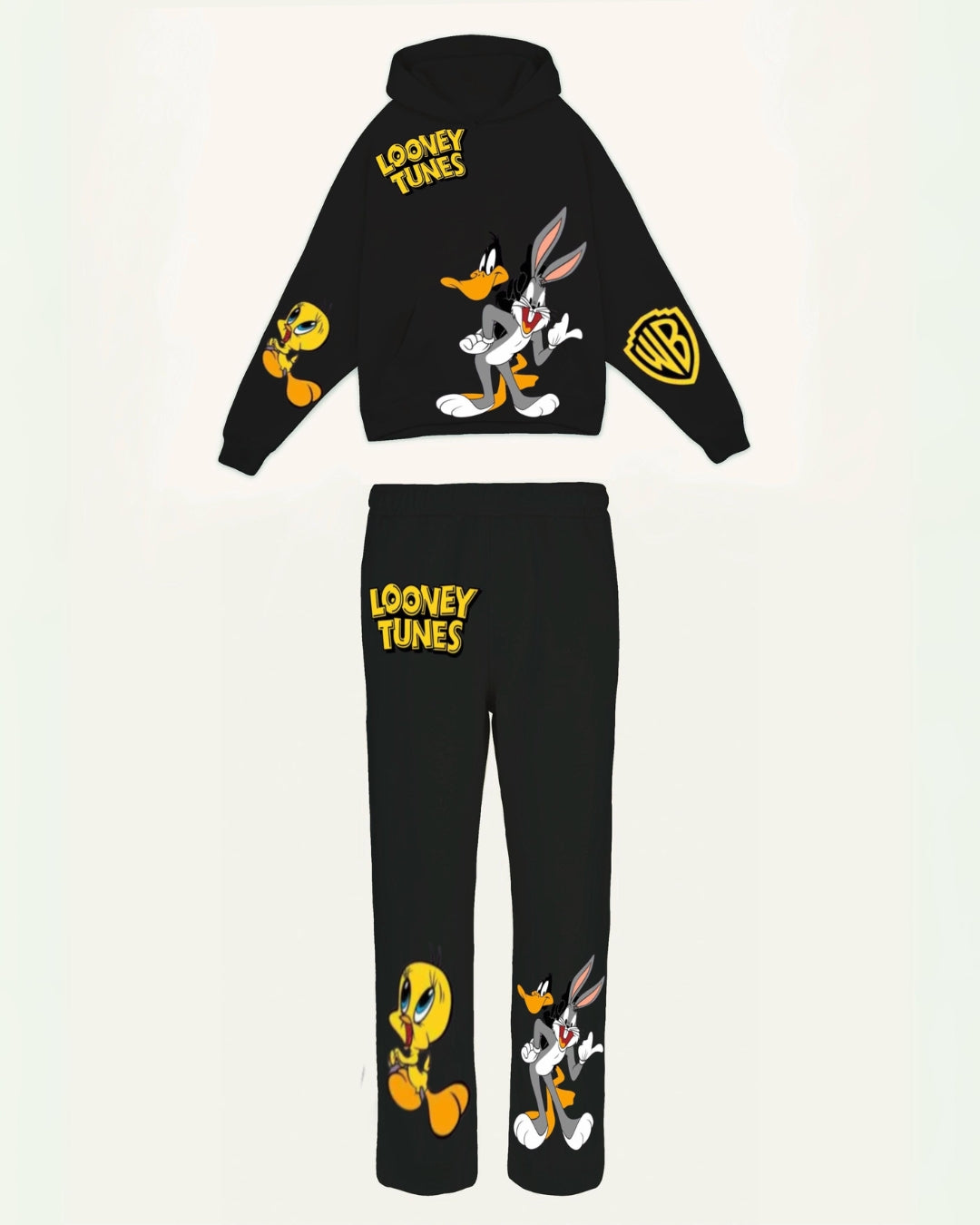 Women Looney Tunes Hoodie Oversized Co-ord Set - Black and Black