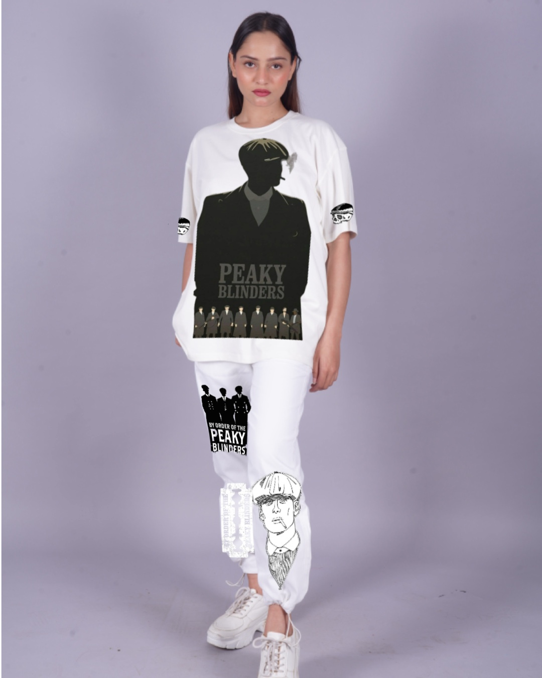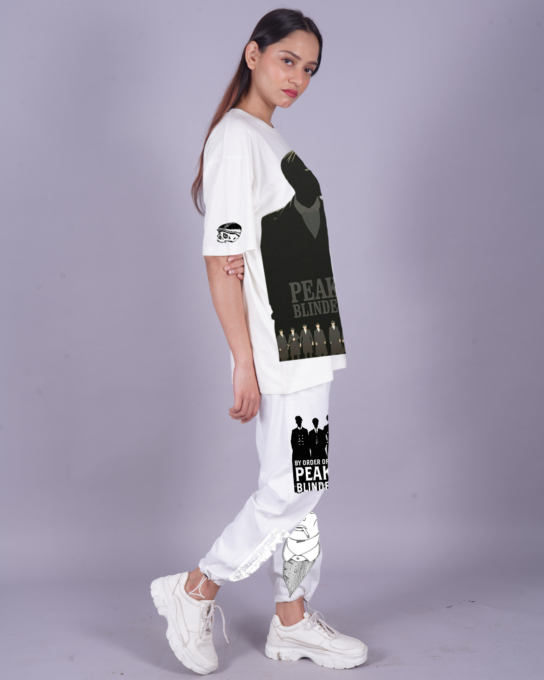 Women Peaky Blinders Oversized Co-Ord Set - White and White