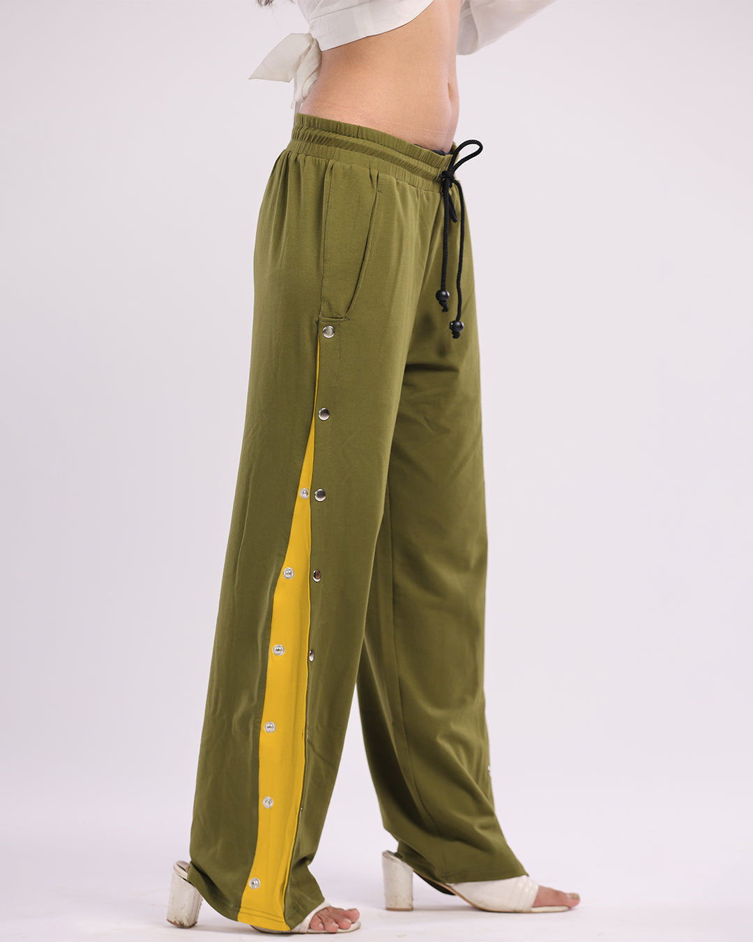 Trendy Cargo Trousers for Women - Cheesy Olive Snap Button Style