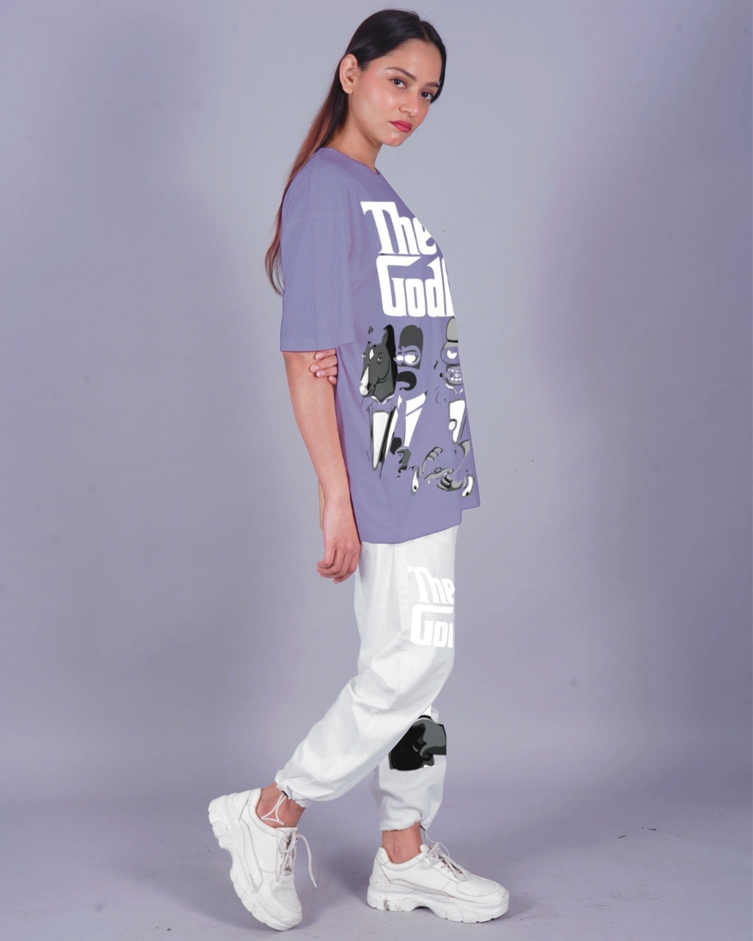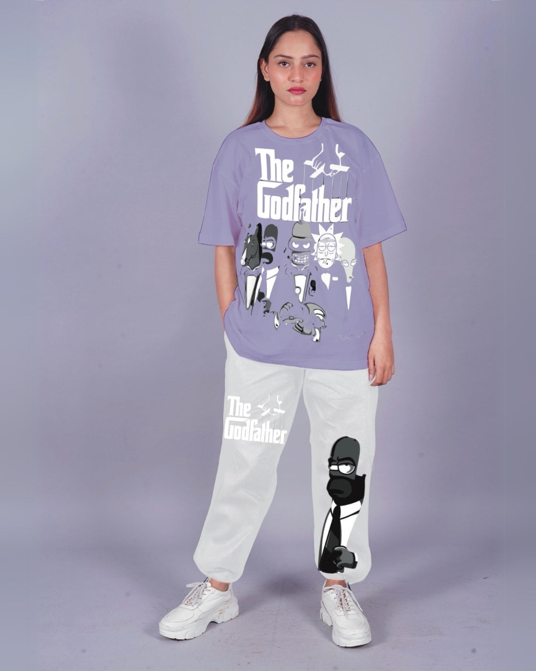 Women The Godfather Oversized Co-Ord Set - Purple and White