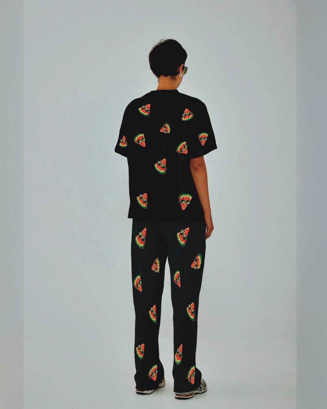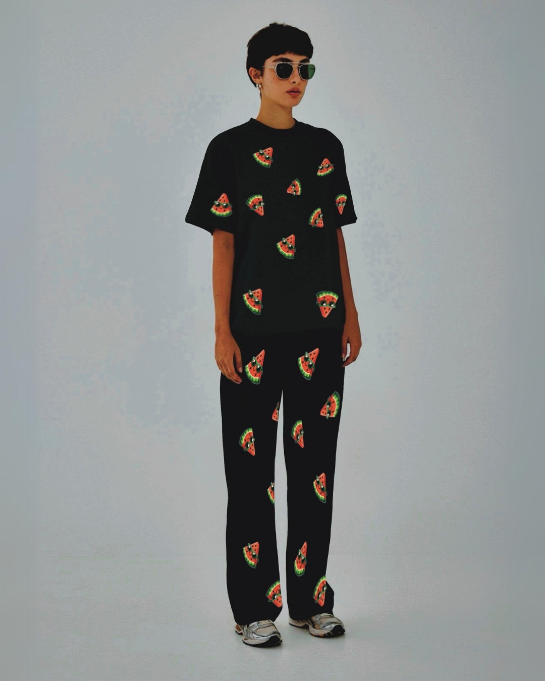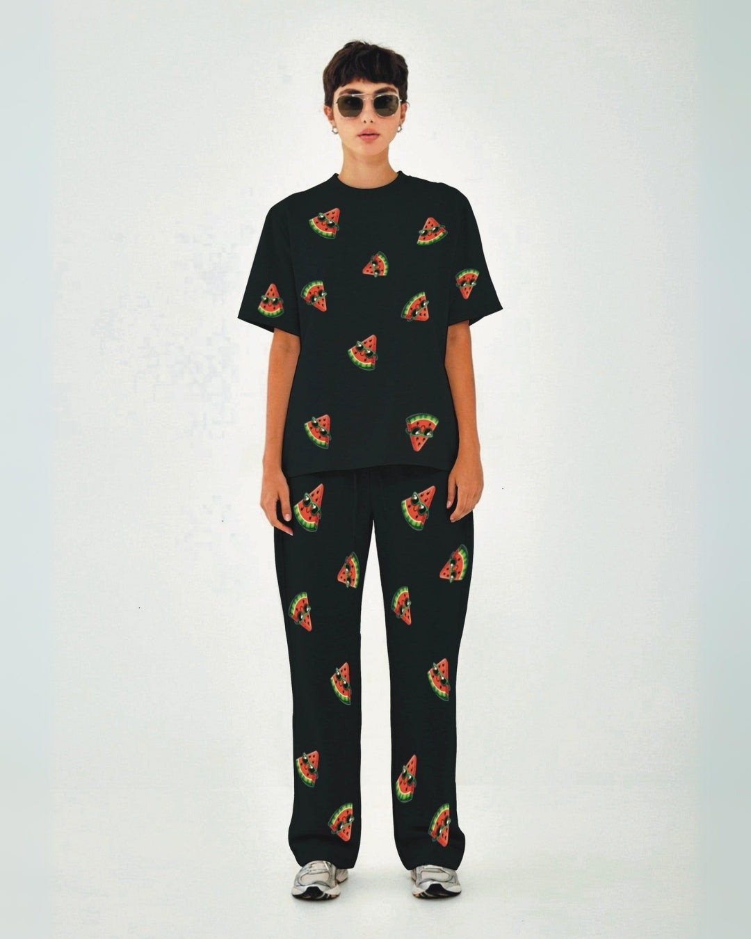 Women Watermelon World Oversized Co-Ord Set - Black and Black