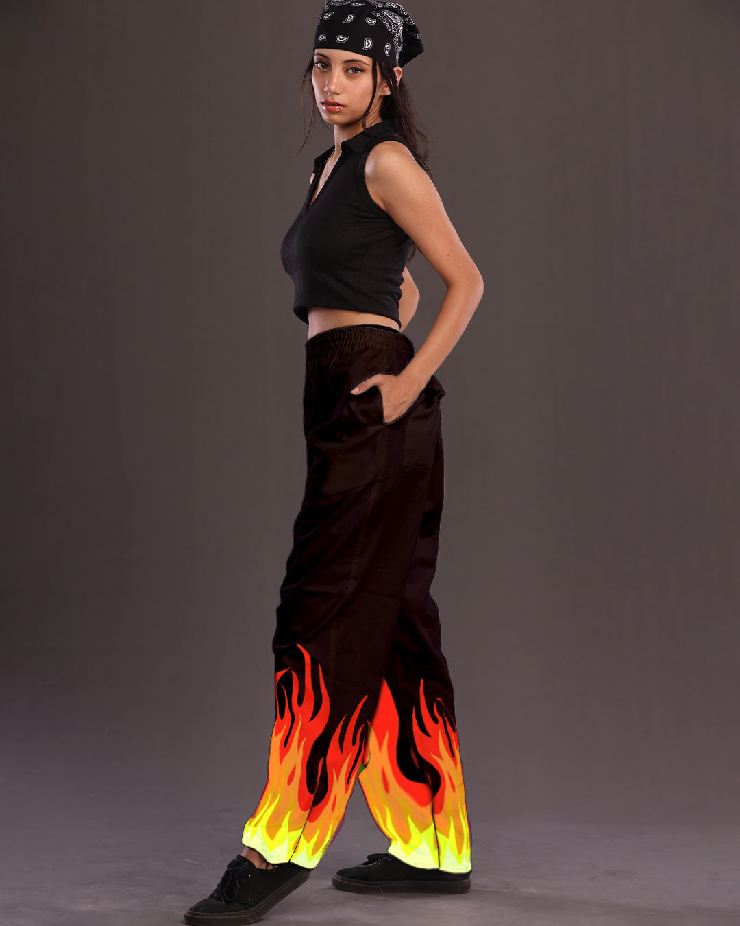 Black Cargo Pants Women: Fire-Inspired Adjustable Style