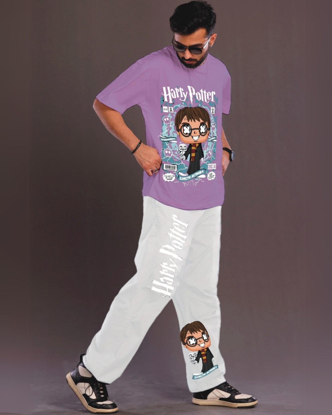 Young Harry Potter Men's Oversized Purple and White Coord Set